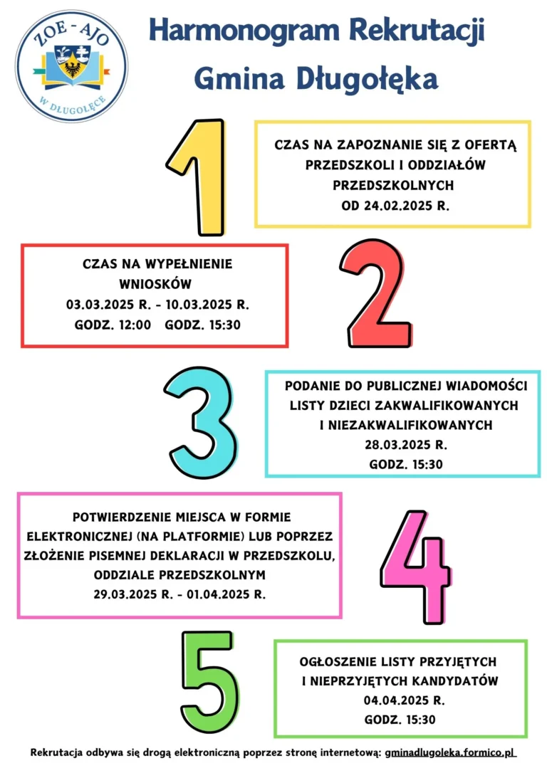 Zarządzenie Nr 19/2025 Wójta Gminy Długołęka w sprawie określenia na rok szkolny 2025/2026 terminów przeprowadzania postępowania rekrutacyjnego i postępowania uzupełniającego, w tym terminów składania dokumentów do publicznych przedszkoli, oddziałów przedszkolnych w publicznych szkołach podstawowych i klas pierwszych publicznych szkół podstawowych i oddziałów mistrzostwa sportowego w publicznych szkołach podstawowych prowadzonych przez Gminę Długołęka.