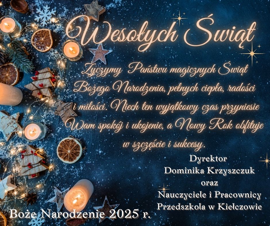 Życzymy Państwu magicznych Świąt Bożego Narodzenia, pełnych ciepła, radości i miłości. Niech ten wyjątkowy czas przyniesie Wam spokój i ukojenie, a Nowy Rok obfituje w szczęście i sukcesy.